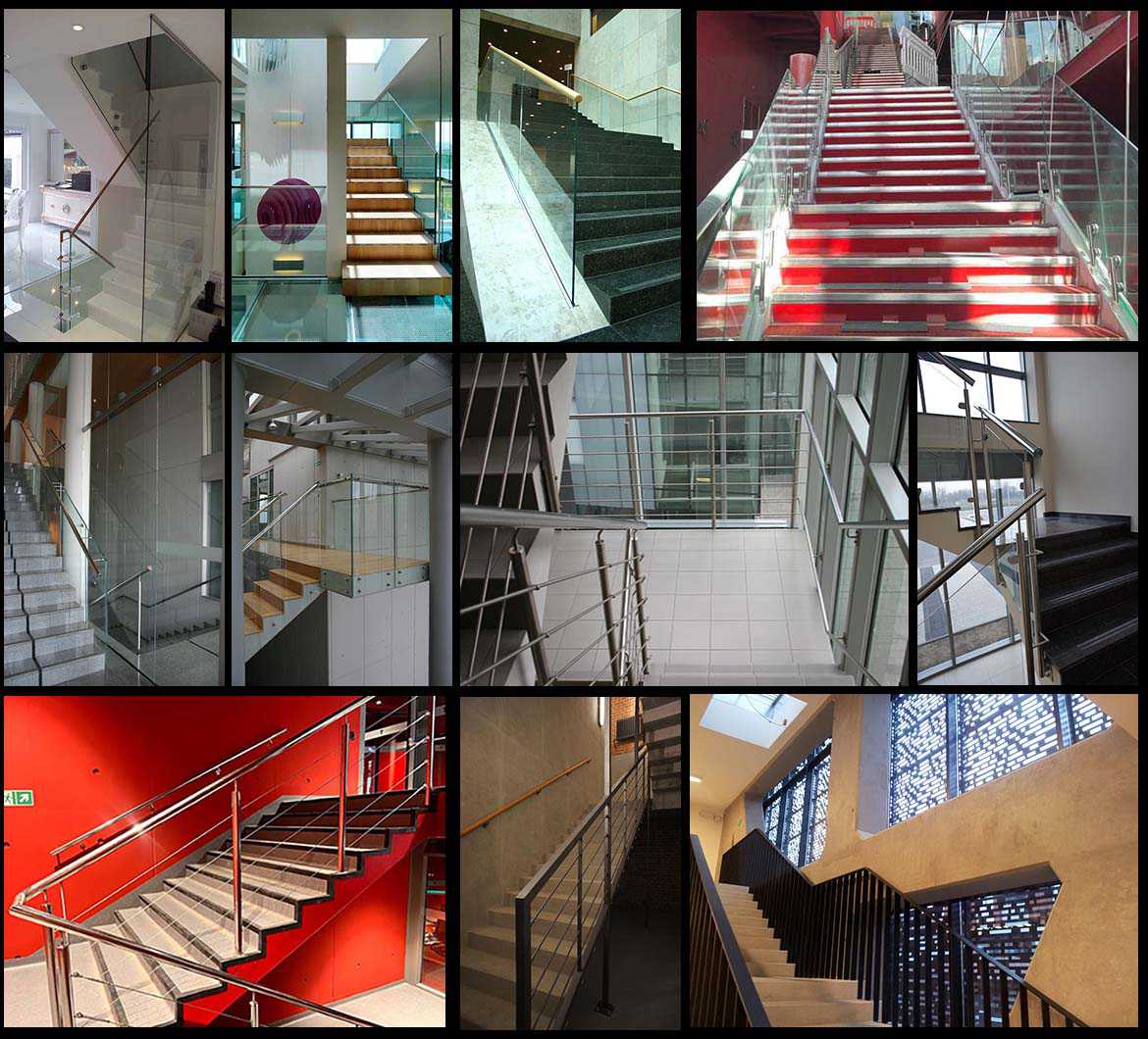 Solutions presented are from stainless or galvanized steel and laminated, toughened, satin glass in infill or self supporting glass.